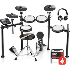 Este kit de batería electrónica incorpora pads con superficie silenciosa y tacto cómodo, ideal para ensayo en casa o en entornos pequeños. Con una amplia gama de sonidos integrados, múltiples kits preconfigurados y opciones de conectividad como USB-MIDI para conectar a software de creación musical, la DED-200 es una excelente opción accesible para principiantes y bateristas intermedios que desean mejorar su técnica sin comprometer calidad de sonido.