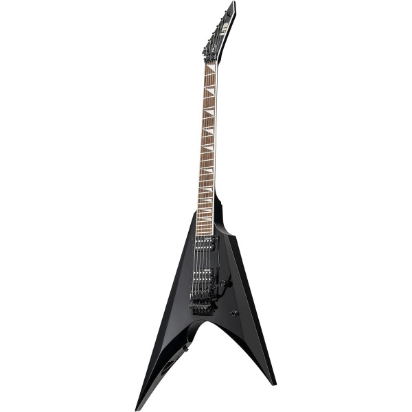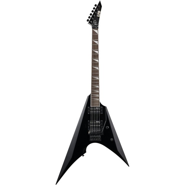 La LTD Arrow-200 Black combina un diseño radical en forma de flecha con la solidez y comodidad que caracteriza a ESP. Es una guitarra pensada para el metal moderno y estilos agresivos, con un sonido potente, sustain prolongado y una estética totalmente negra que impone presencia en el escenario. Su cuerpo de caoba ofrece calidez y cuerpo al tono, mientras que el mástil de arce de 3 piezas con perfil delgado y trastes extra jumbo permite una ejecución rápida y precisa. El sistema de trémolo de doble bloqueo tipo Floyd Rose garantiza estabilidad incluso en los bends y dive bombs más extremos.