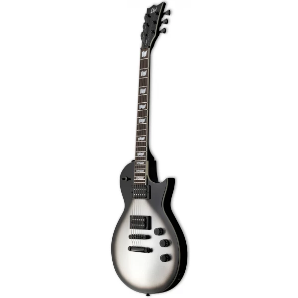 La LTD EC-256 SSB Silver Sunburst es una guitarra eléctrica estilo single cut con look clásico y prestaciones modernas. Ofrece cuerpo de caoba con tapa flameada, mástil encolado de caoba de 3 piezas y diapasón de jatoba, entregando un tono cálido, con sustain largo y ataque sólido.