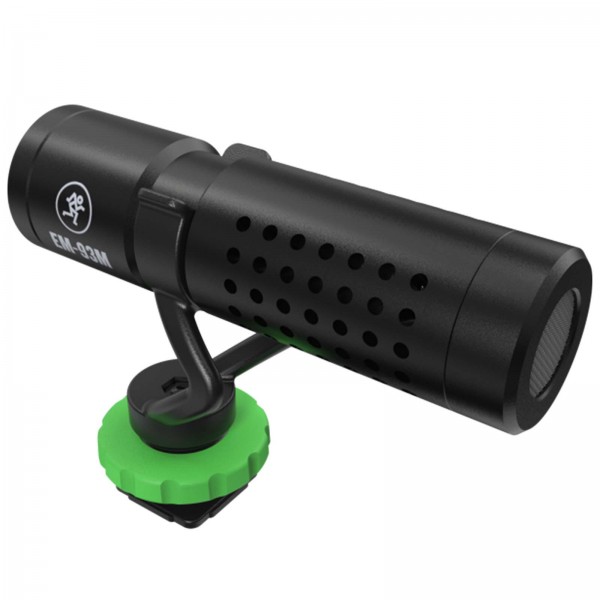 Mackie EM-93M es un micrófono de condensador cardioide ultra-compacto para smartphones y cámaras DSLR. Está pensado para creadores móviles, periodismo, vlogging y streaming, entregando audio claro con montaje plug-and-play. Incluye shockmount con zapata, cortavientos de espuma y tipo “peludo”, además de cables TRS/TRRS para conectar de inmediato.