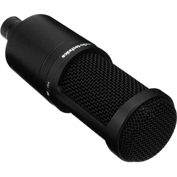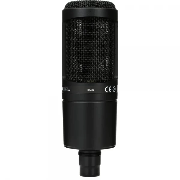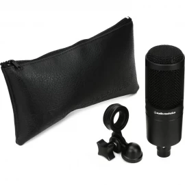 El Audio-Technica AT2020 es un micrófono condensador cardioide de diafragma mediano diseñado para grabación de voz, instrumentos acústicos, podcast, streaming y estudio casero. Su cápsula de baja masa entrega una respuesta clara, precisa y natural, con excelente detalle en medios y agudos.