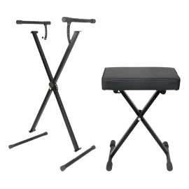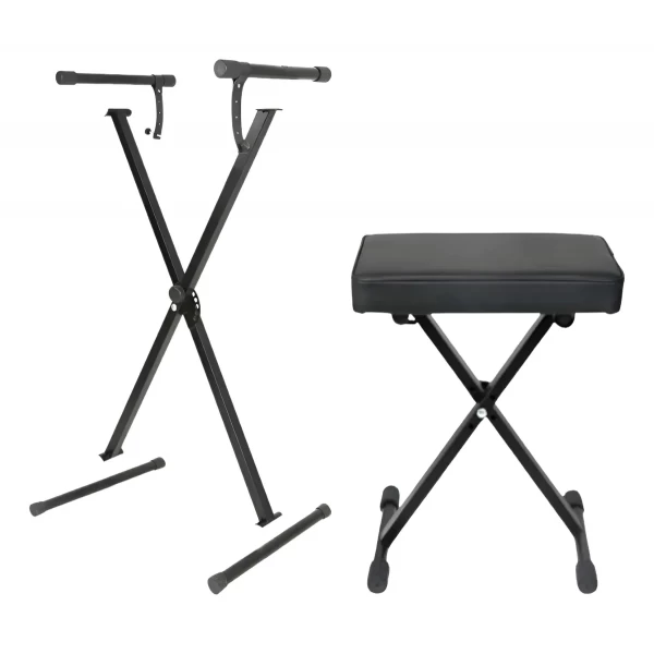 El Pack Hebikuo Q90B-Q1X incluye un sillín acolchado ajustable y un atril simple tipo X para teclado, ideal para quienes buscan una solución práctica y cómoda para estudio, ensayo o uso doméstico. El sillín ofrece una postura estable y confortable durante largas sesiones, mientras que el atril brinda soporte firme para teclados de distintos tamaños.