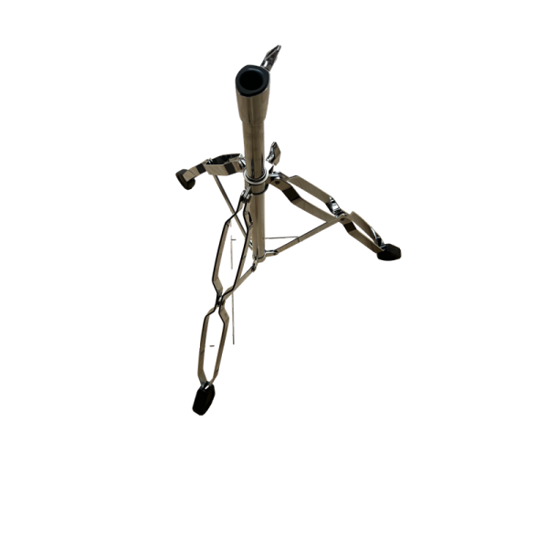 Base metálica de 3 patas para atril boom, compatible con tubo de 19 mm, resistente y plegable.